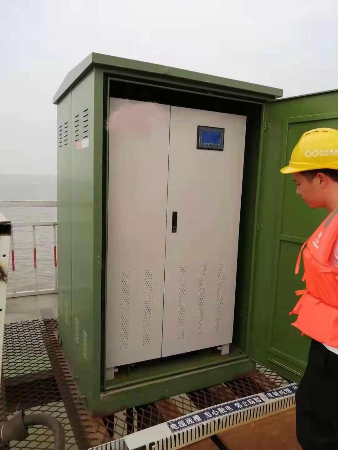 系统采用二级组合防雷,在电源发生器的输出端和电源变换器的输入端都配有高性能的防雷模块,同事电源变换器还有没配电分路装置,可以提供1-8供电回路。